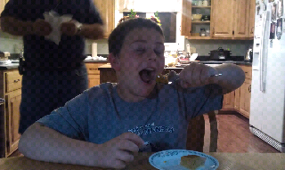 Cameron was over the moon Friday night...his Nanna made him a birthday pie! I don't think he enjoyed it...do you?